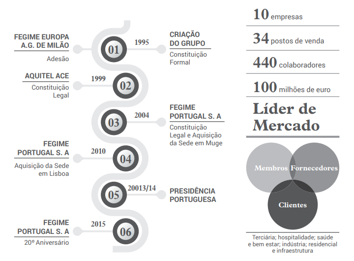 Fundado em 1995, o Grupo Fegime Portugal, SA, tem como objetivo unir a força de empresas familiares de pequena e média dimensão e garantir a sustentabilidade da sua atividade, constituindo uma alternativa verdadeiramente nacional, na distribuição de materiais e equipamentos elétricos, em especial parceria com as marcas mais significativas do setor. A JMM, enquanto empresa familiar com grande ligação às pessoas e às suas zonas e áreas de atuação, tem como prioridade essencial as relações pessoais com os Colaboradores, Clientes e Parceiros. Procuramos, simultaneamente, conseguir oferecer um serviço de excelência e condições competitivas, tendo sido um dos fundadores do grupo FEGIME Portugal, que atualmente é o líder nacional da distribuição de material elétrico, gerando anualmente um volume de negócios superior a 124M€. Operando em 30 mercados, o Grupo FEGIME é composto por 18 Organizações Nacionais - Dinamarca, Finlândia & Bálticos, França, Alemanha, Grécia & Chipre, Hungria, Irlanda, Israel, Itália, Holanda, Noruega, Polónia, Portugal, Roménia, Espanha, Ucrânia, Reino Unido e Argentina. Os mais de 260 grossistas da rede e os seus 1.300 Pontos de Venda, geram um volume de negócios superior a 8.3 mil milhões de euros, conferindo ao Grupo FEGIME uma quota do mercado europeu superior a 10%. |